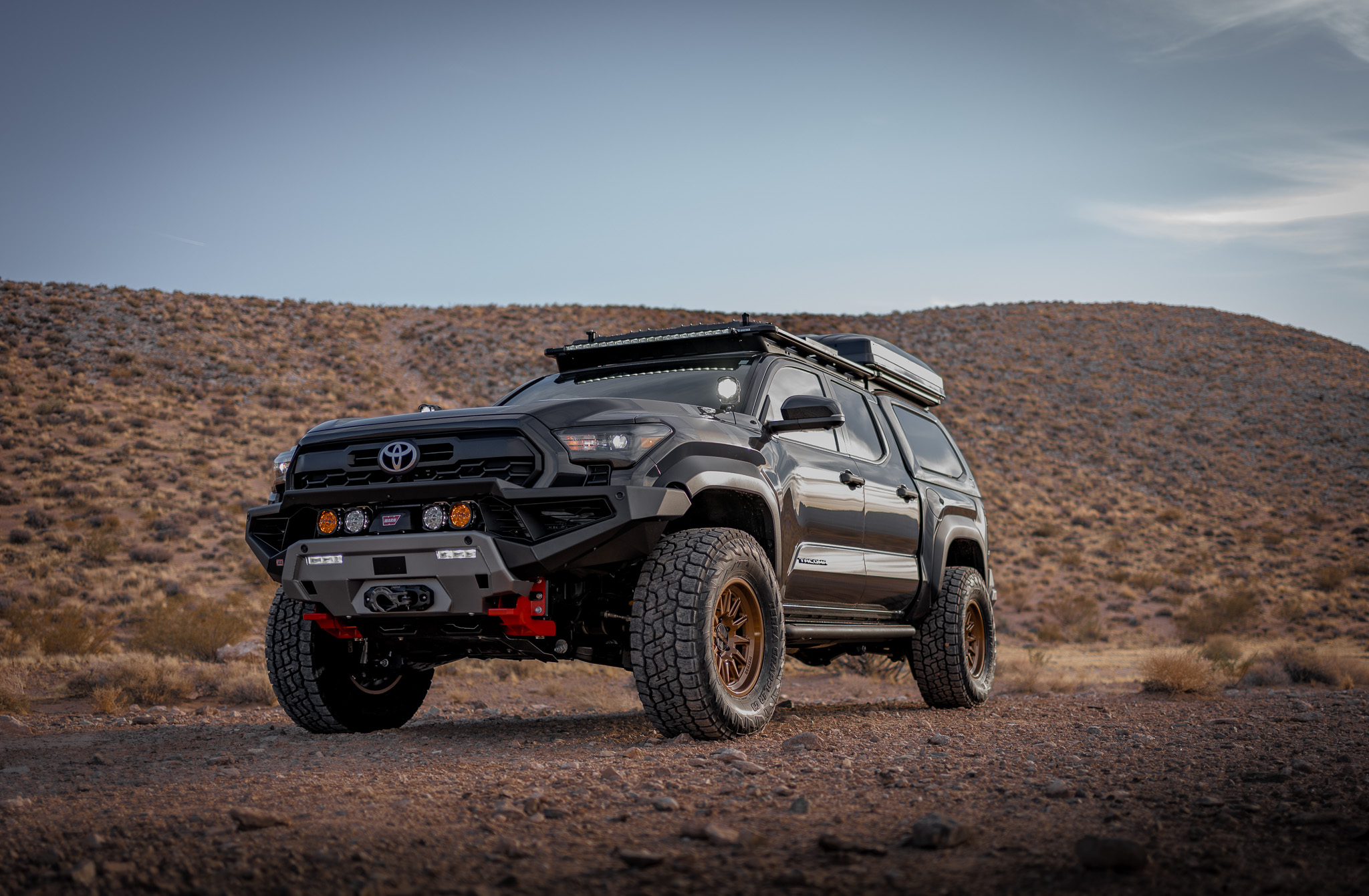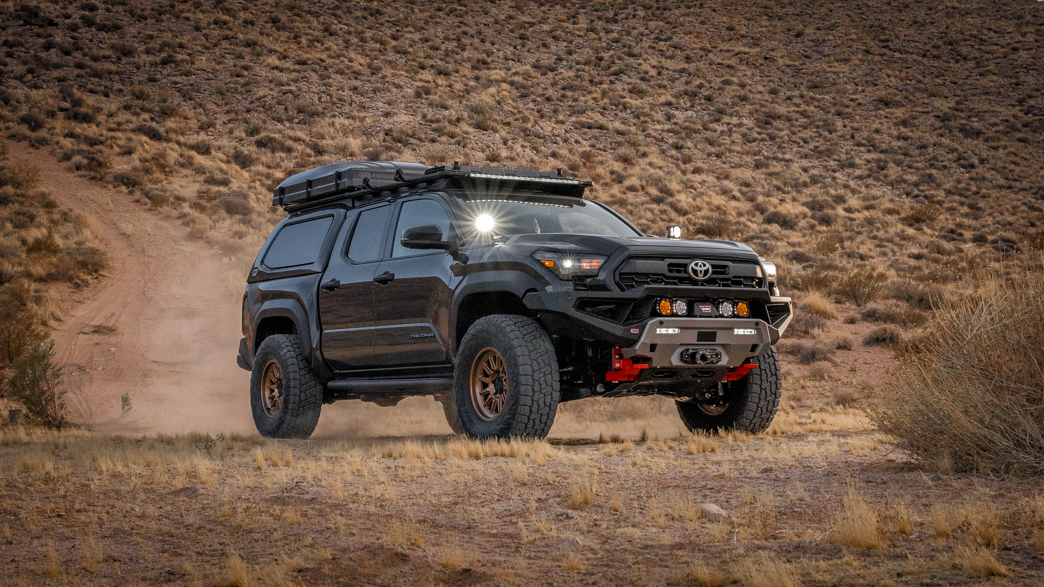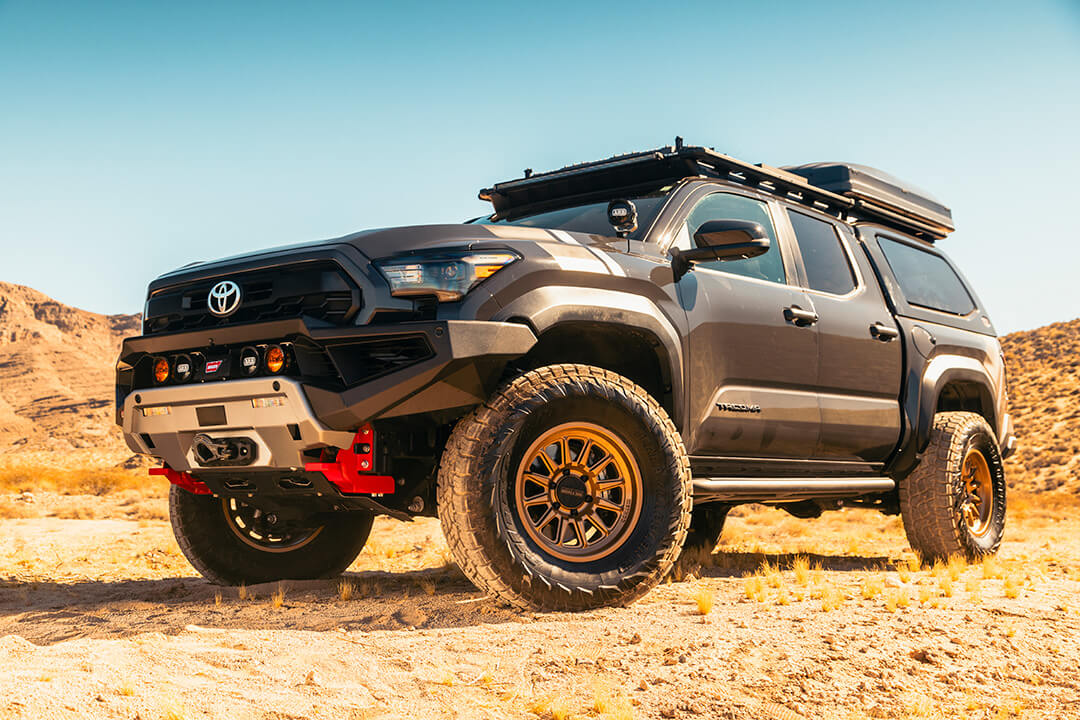 This year, ARB is excited to present a build that enhances the already impressive capabilities of the Tacoma with a suite of premium accessories tailored for serious off-roading and overlanding. The ARB Zenith Winch Bumper offers robust, modern-styling front-end protection, while the ARB Trailhunter Rear Bumper (available exclusively through Toyota AAP) ensures durability and provides essential recovery points at the rear. With the addition of the Old Man Emu BP-51 Suspension, this Tacoma is equipped to handle the weight of all the extra gear without compromising ride comfort or handling.